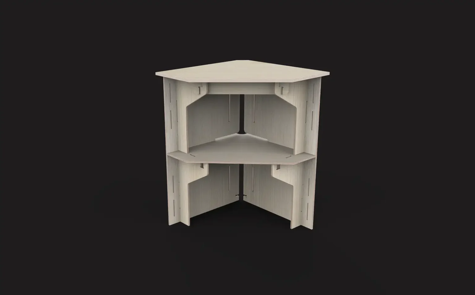 Our open corner design turns unused space into a striking display – practical, decorative, and easy to access. It features a compact tabletop for highlighted pieces, plus open
