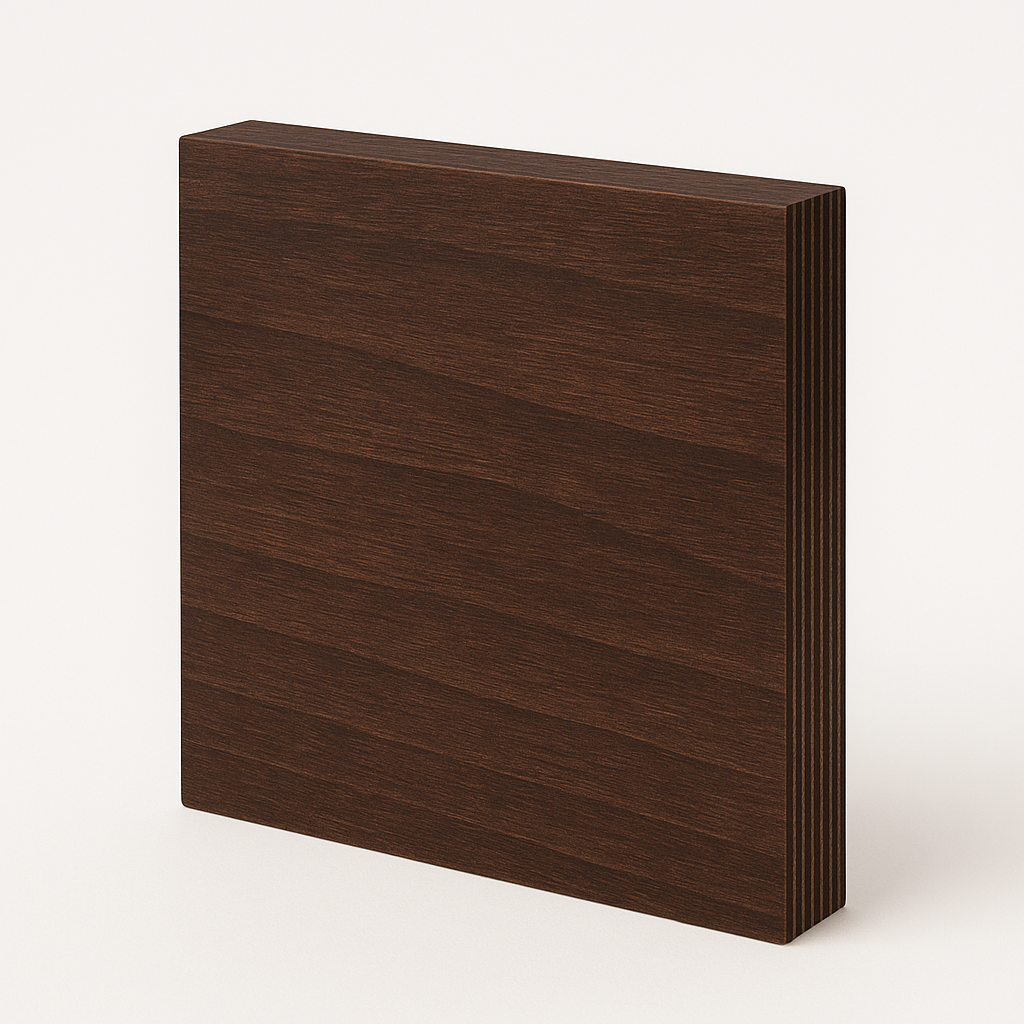 This tier introduces refined colour customisation while maintaining the tactile character of real wood. We apply a carefully selected stain in any RAL tone, allowing the natural grain to remain visible and preserving the sense of warmth and authenticity. The surface is then sealed with a protective lacquer, enhancing its durability and resistance to scratches or wear. This combination of colour and craftsmanship enables us to match the look of other wood types, or even develop fully bespoke shades – aligning every detail with your brand’s visual identity.